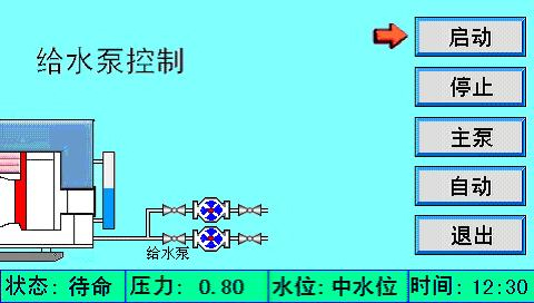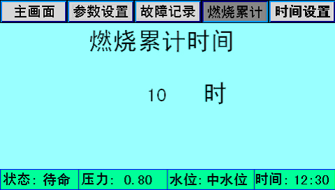 主画面上同时显示控制器状态、系统压力、水位、时间、燃烧器状态、泵状态等。