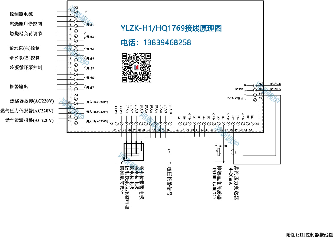 YLZK-H1 HP1769 BOILER CONTROLLER智能锅炉控制器面板、背面、内部图